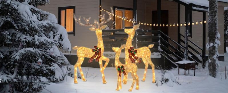 【Outdoor Christmas Decoration Set】This reindeer family set includes a buck, a doe, and a fawn. Each piece is crafted from cotton thread wrapped around a durable wire frame, combining elegance with stability. Representing warmth and togetherness, the reindeer family is a beautiful symbol of holiday reunion.
